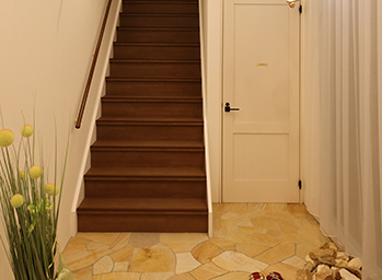 スリッパに履き替えてお上がりください。 -